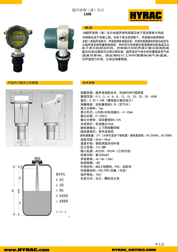 LMB一體式超聲波液位計